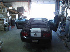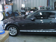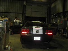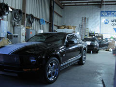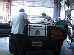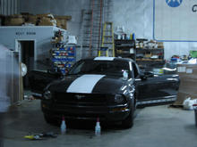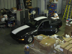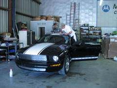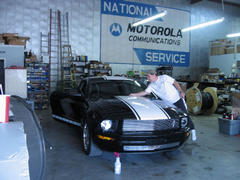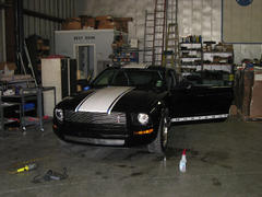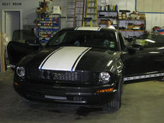 Well, this weekend we decided to 'try our luck' at putting "SS" type stripes on not one but TWO 'stangs!!!! With a great deal of team work between myself, Mendy and my friend Jason Coe, we got it done. We were working into the night and we were all really tired when we were finished. The final result was pretty good, so no one was complaining!
